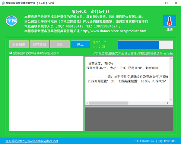 数擎宇视监控录像恢复软件(带碎片重组功能) V2.5 --具有重组视频碎片的恢复软件